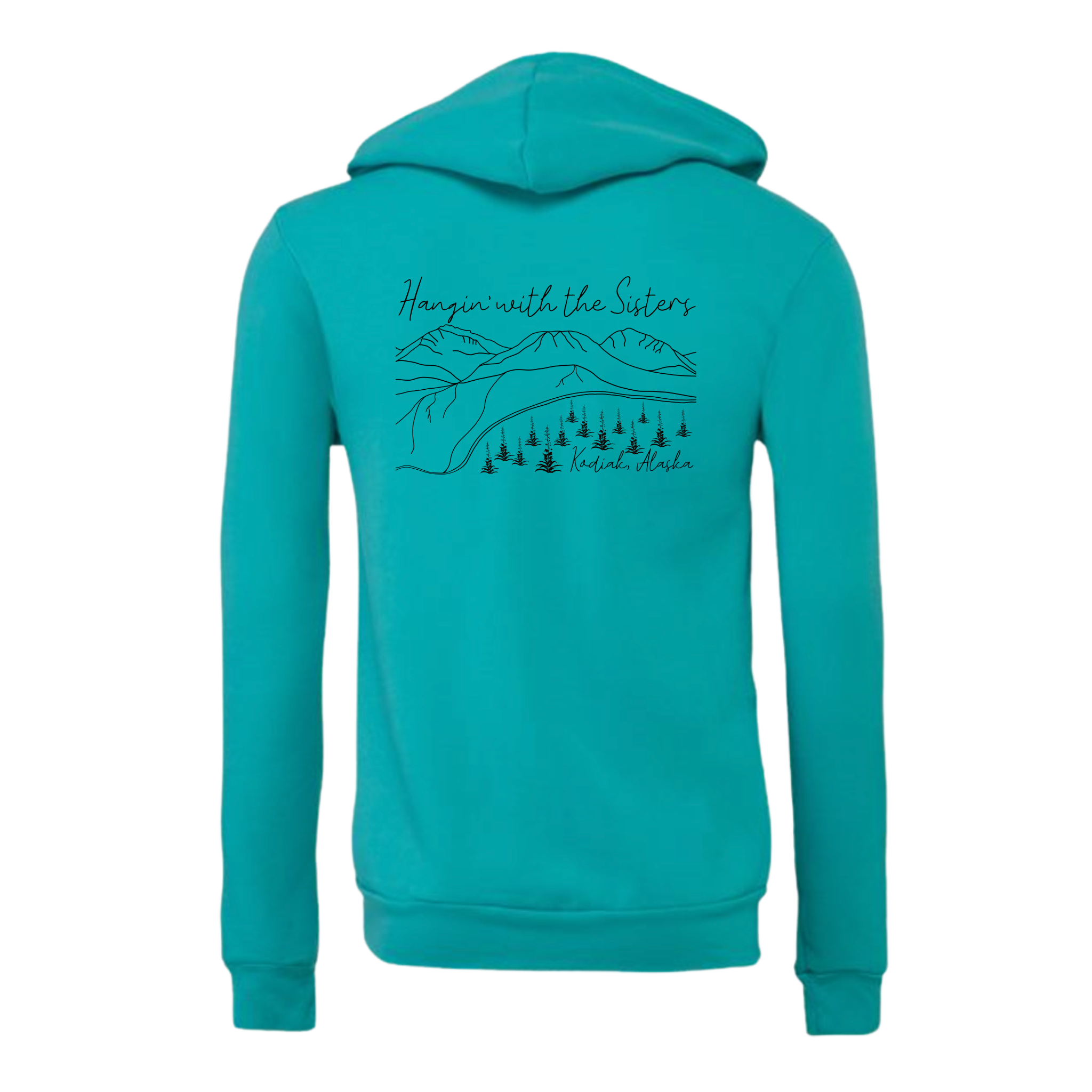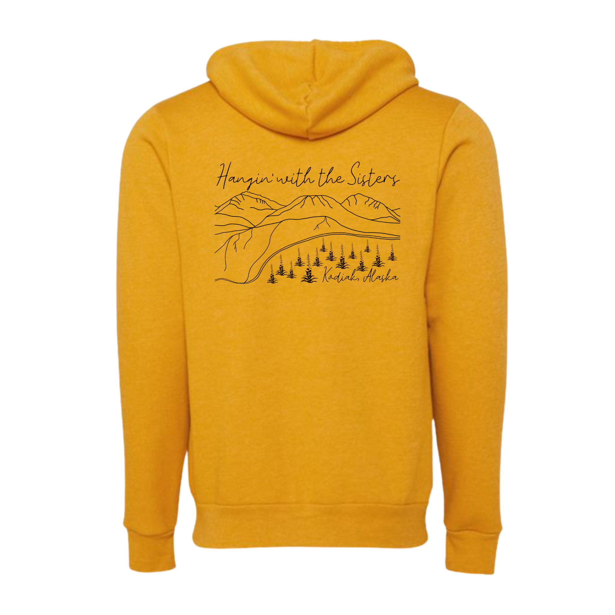 This limited-edition unisex full-zip hoodie features the breathtaking Three Sisters mountain range—North Sister, Middle Sister, and South Sister—captured by the amazing Kodiak artist JoAnne Knight.