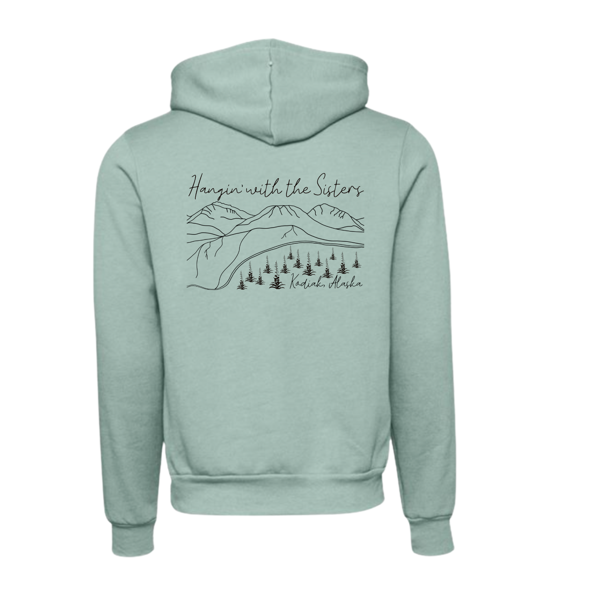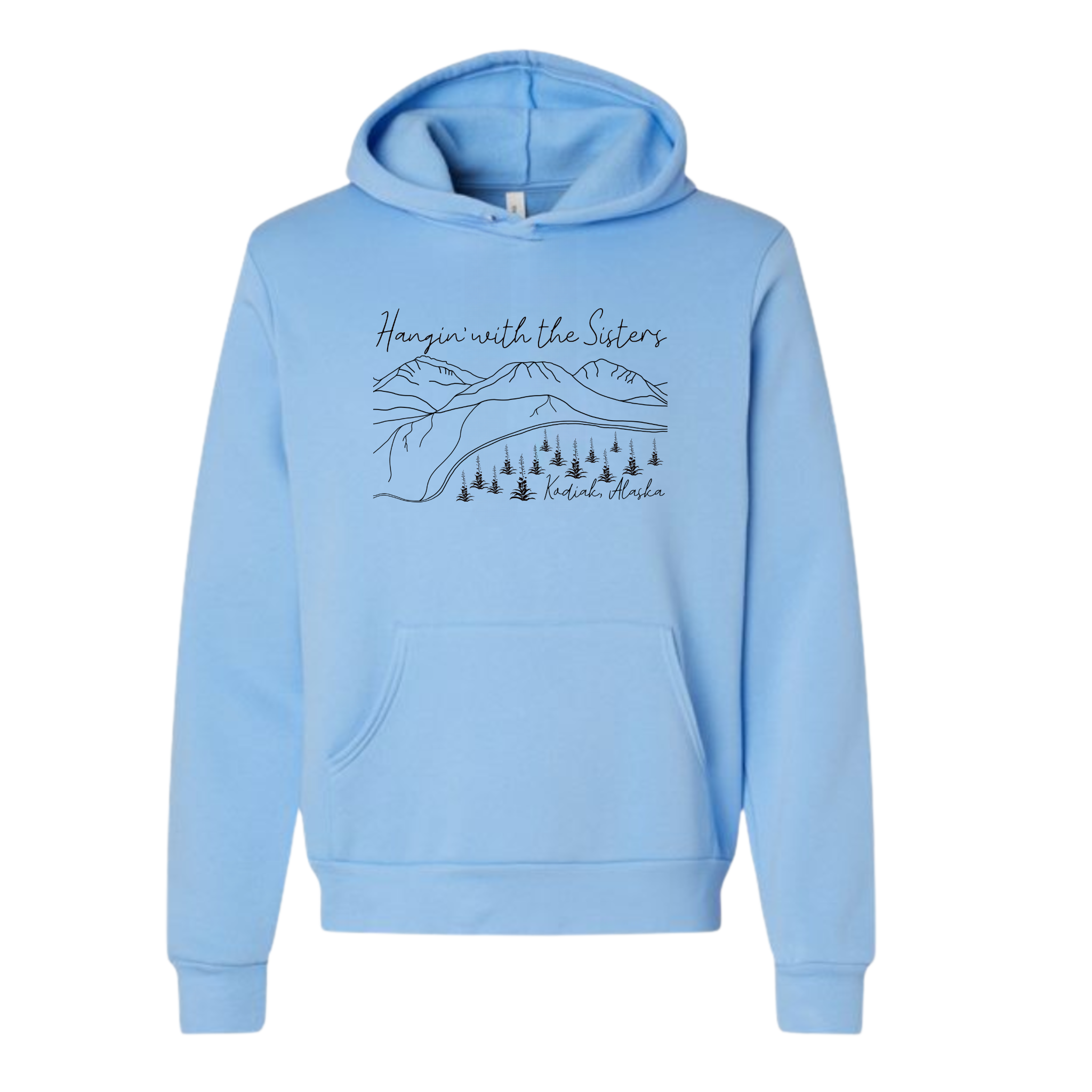 This limited-edition unisex hoodie features the breathtaking Three Sisters mountain range—North Sister, Middle Sister, and South Sister—captured by the amazing Kodiak artist JoAnne Knight.