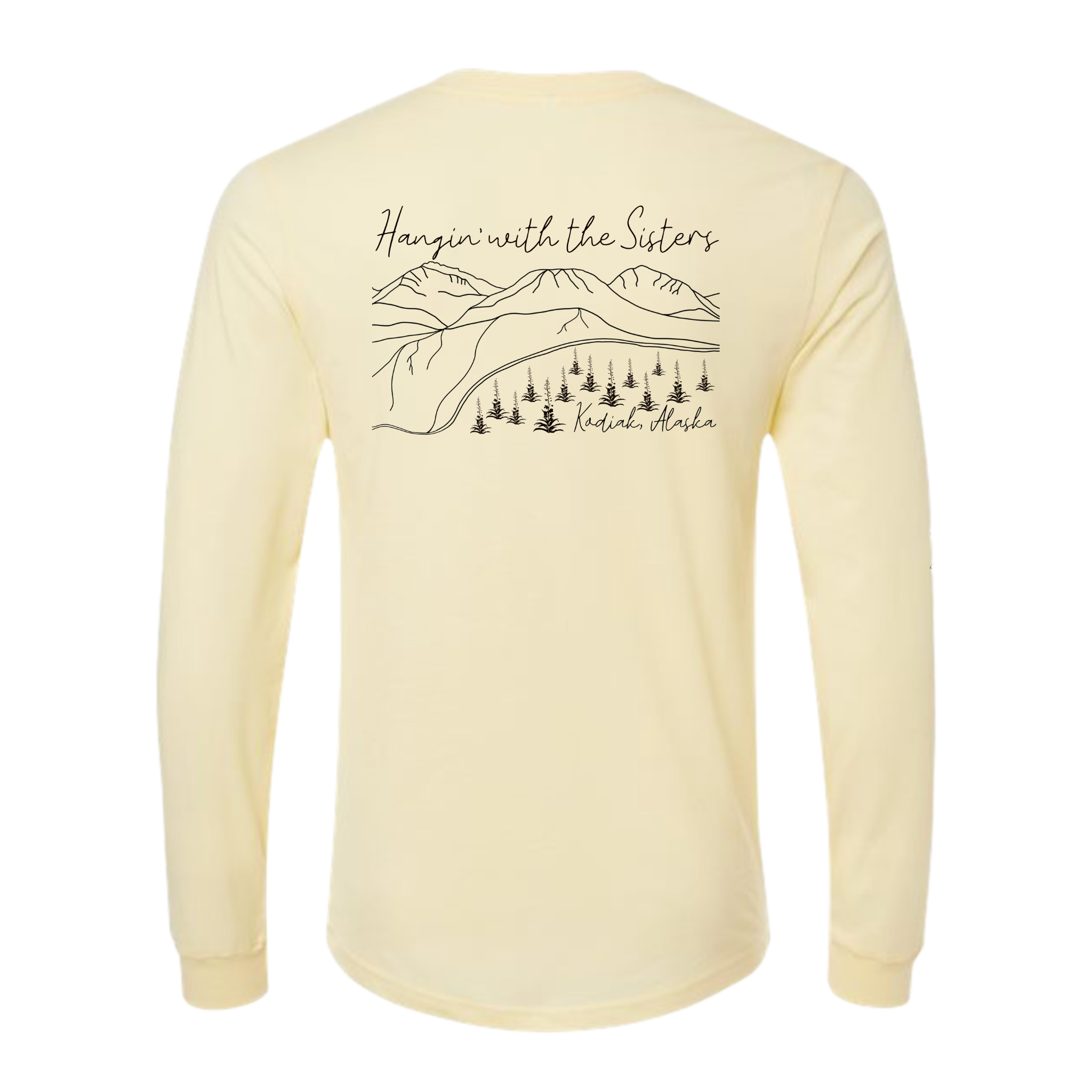 This limited-edition unisex long sleeve tee features the breathtaking Three Sisters mountain range—North Sister, Middle Sister, and South Sister—captured by the amazing Kodiak artist JoAnne Knight.